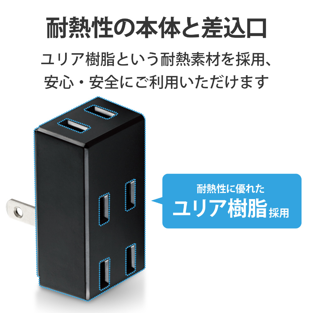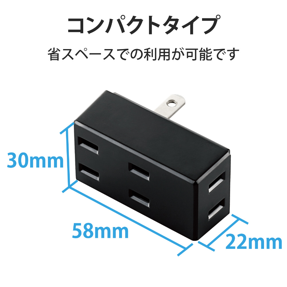 耐熱性に優れたユリア樹脂を使用。1つのコンセントから3口に電源を分配することができるトリプルタップ。
