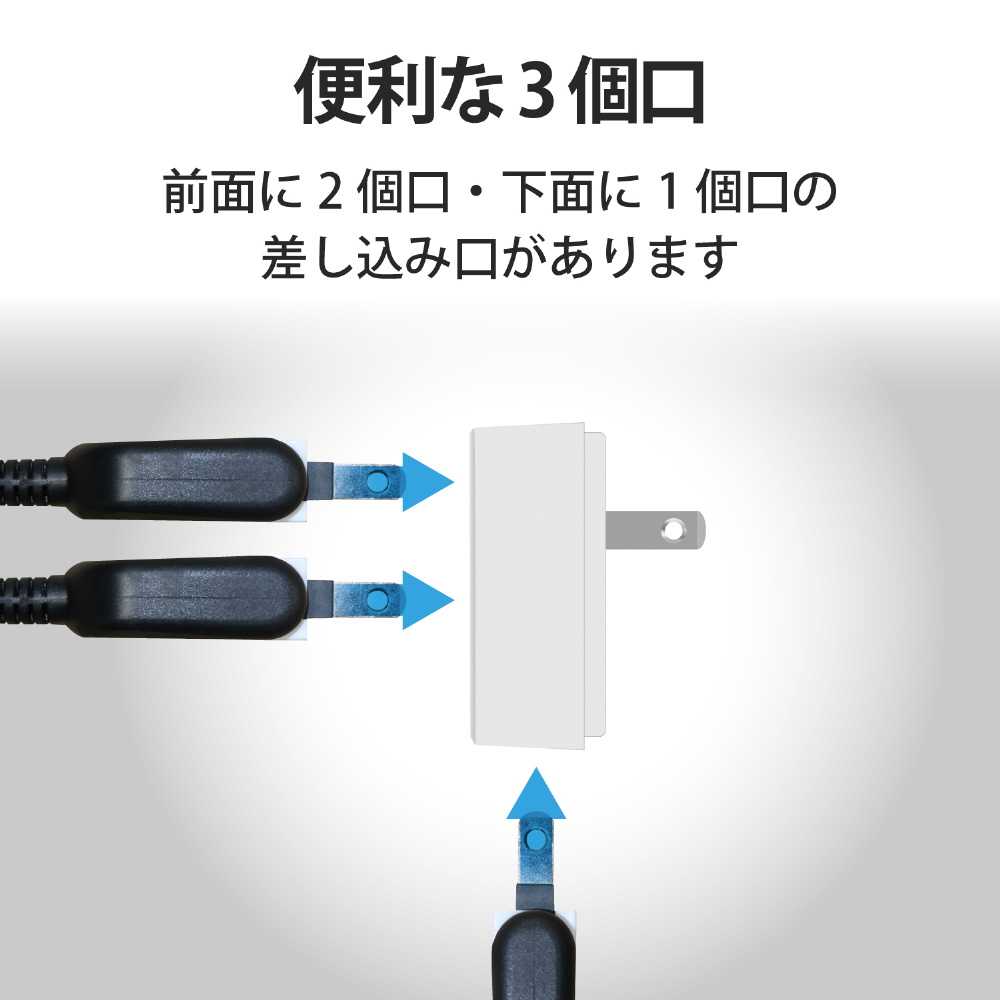エレコム フロントタップ 3個口 ホワイト