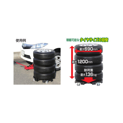 1563 タイヤ交換やタイヤの保管に便利 重量物の移動にも キャスター付きタイヤドーリー