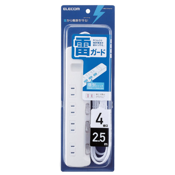 | 商品名 | 雷ガードタップ 個別スイッチ ホコリシャッター付 4個口 2.5m ホワイト T-K6CA-2425WH |