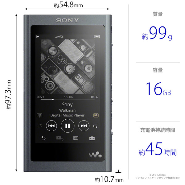 ハイレゾウォークマン WALKMAN Aシリーズ 2018年モデル[カナル型イヤホン付属] NW-A55HN BM グレイッシュブラック [16GB]