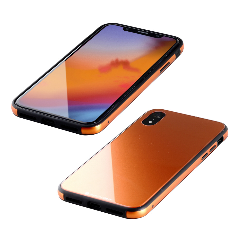 iPhone XR 6.1インチ用 ガラス+TPU+アルミ複合素材ケース オレンジ BKS-IP18MTGGAOR