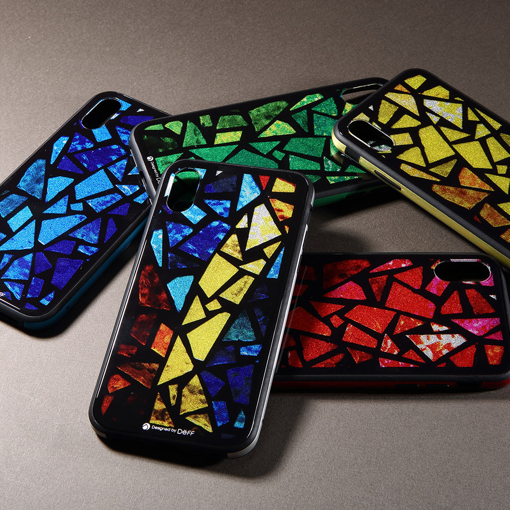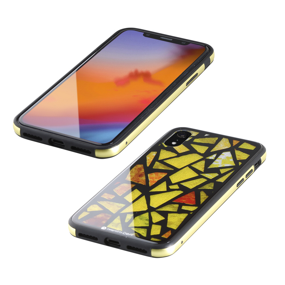 iPhone XR 6.1インチ用 ガラス+TPU+アルミ複合素材ケース 2層印刷 ステンドグラス(イエロー) BKS-IP18MTGGASYL 【864】