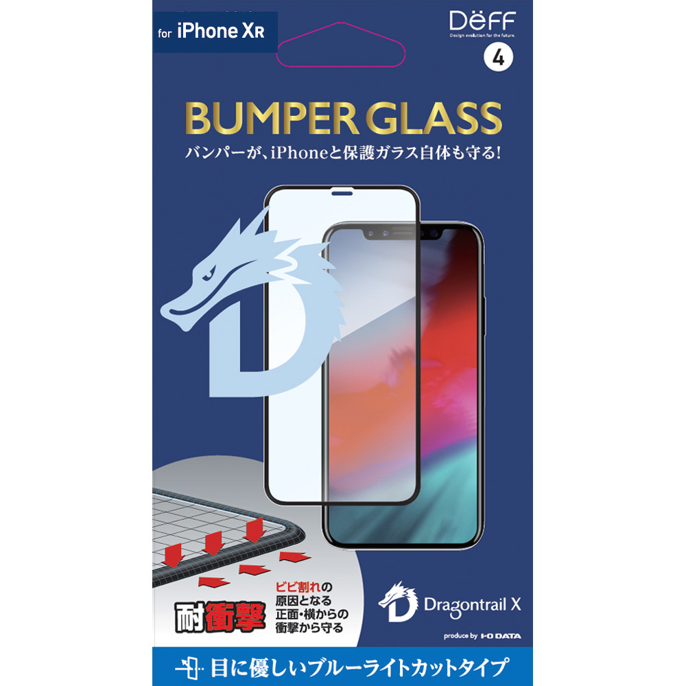 【在庫限り】 iPhone XR 6.1インチ用ガラスフィルム バンパーガラス / ブルーライトカット フルカバータイプ ドラゴントレイルX BKS-IP18MBB3DF