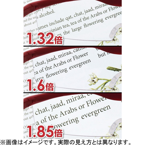 メガネ・コンタクトの上から掛けられ、両手が使えるメガネ型拡大鏡。ブルーライト55%カットのカラーレンズ。衝撃に強く、小さく軽い、持ち運びに便利な標準サイズ。