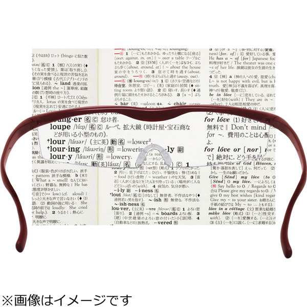 メガネ・コンタクトの上から掛けられ、両手が使えるメガネ型拡大鏡。ブルーライト35%カットのクリアレンズ。衝撃に強く、小さく軽い、持ち運びに便利な標準サイズ。
