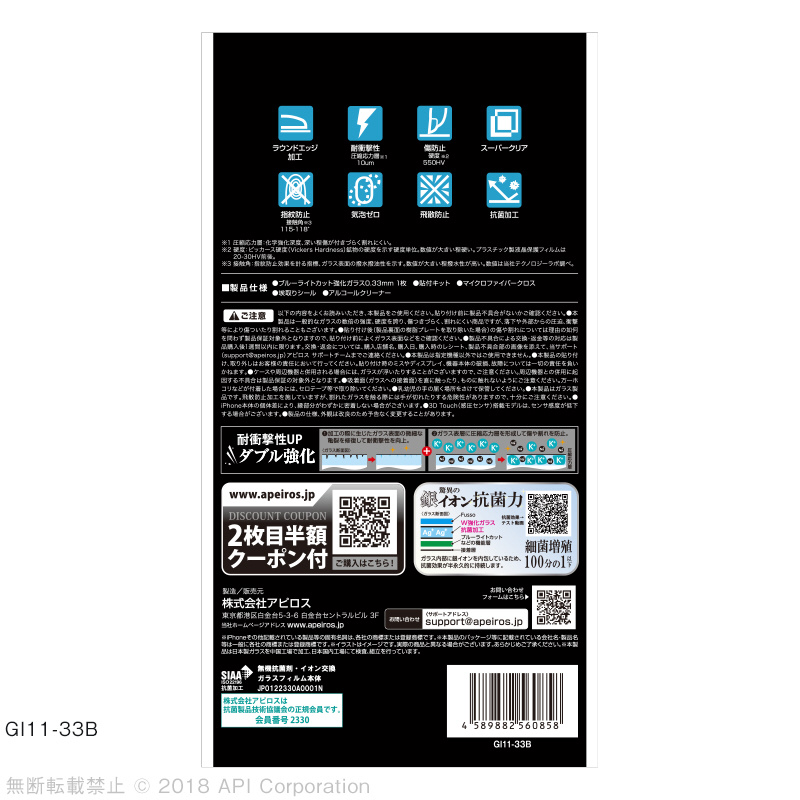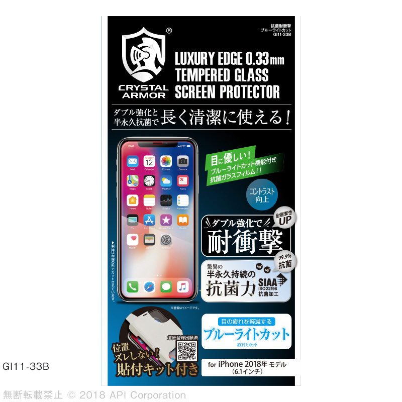 商品名 iPhone XR 6.1インチ 抗菌耐衝撃ガラスブルーライトカット クリア GI1133B