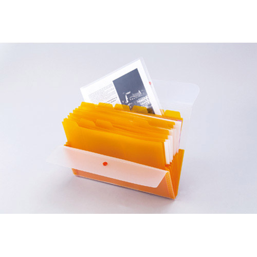 書類の増減に応じて幅が調整できる。A4サイズの書類を12仕切、13ポケットで分類整理。