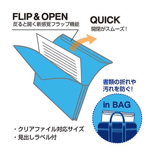 書類の出し入れが簡単!新感覚フラップ機能!プリント整理持ち歩きに便利なフタ付きファイル!