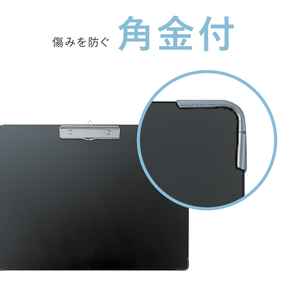 ■丈夫なクロス貼りで角金付の用箋挟です