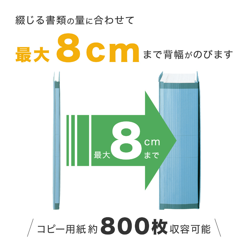 書類に合わせて背幅が最大8cmまで伸びる便利なファイル