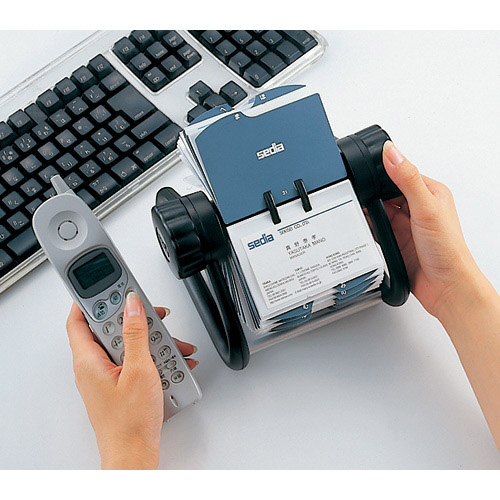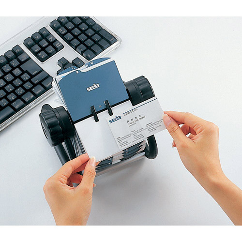 50音インデックスで簡単、スピード検索ができる回転式の名刺ホルダー