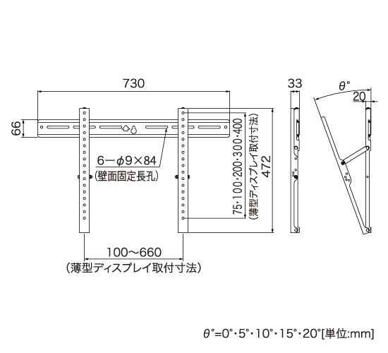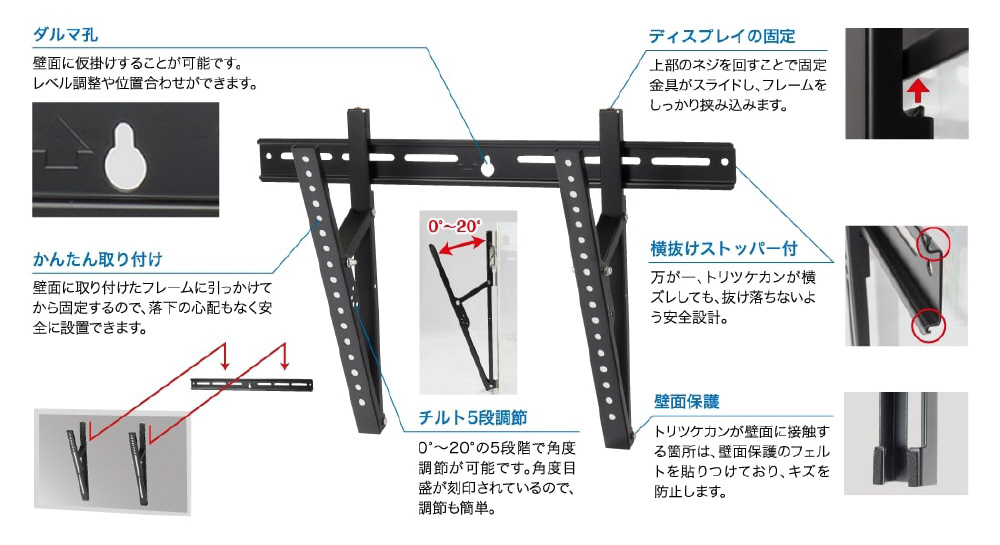 壁掛金具 角度可変薄型(44〜60インチ対応) FA-WTU-M