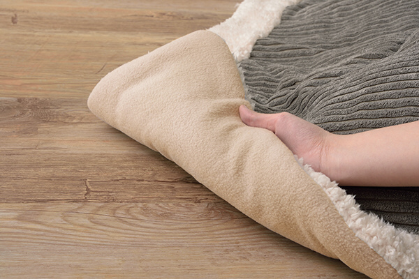 ファッション性の高い【コーデュロイ】の生地を使用した薄掛けコタツ布団。表面のヘリ部分には柔らかい手触りのシープボア仕上げ。裏面は保温性のあるフリース素材を使用。見た目・実用性どちらもこだわったコタツ布団。