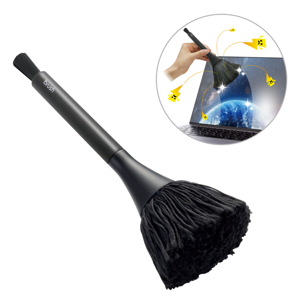 ■ディスプレイやOA機器のお掃除に最適な2種類の毛が付いた回転タイプのクリーニングブラシです。