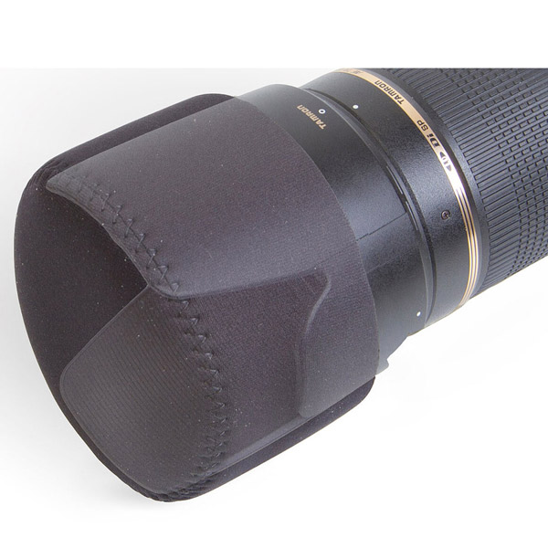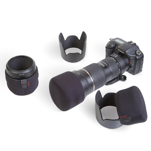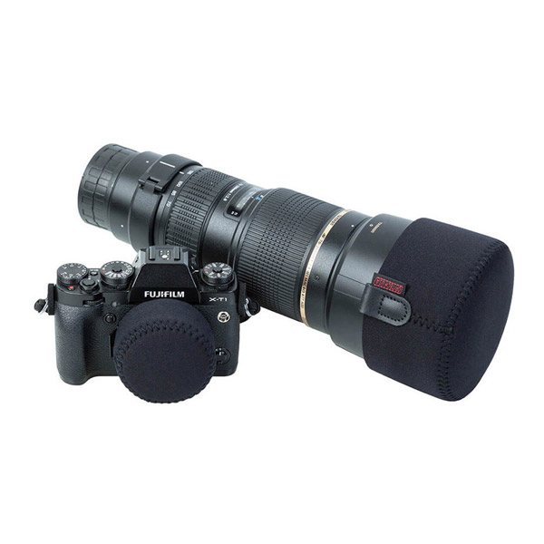 筒状のデザインで、レンズやレンズフードにしっかりとフィットします。また、素材はオプテックの特徴であるネオプレンで、耐久性に優れながら伸縮性があり、着脱をスムーズに行うことができます。