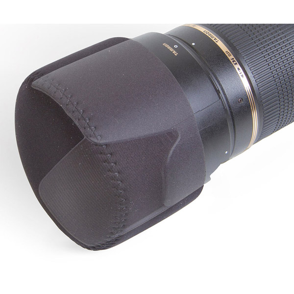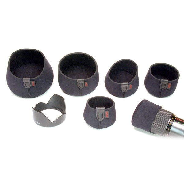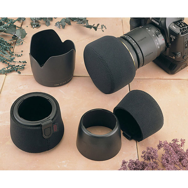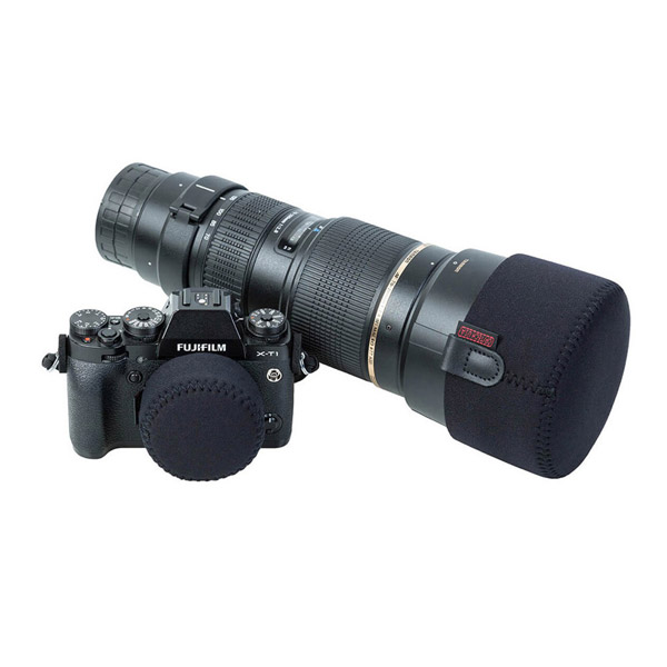 筒状のデザインで、レンズやレンズフードにしっかりとフィットします。また、素材はオプテックの特徴であるネオプレンで、耐久性に優れながら伸縮性があり、着脱をスムーズに行うことができます。