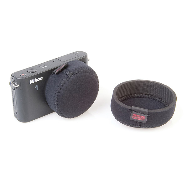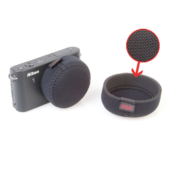 筒状のデザインで、レンズやレンズフードにしっかりとフィットします。また、素材はオプテックの特徴であるネオプレンで、耐久性に優れながら伸縮性があり、着脱をスムーズに行うことができます。