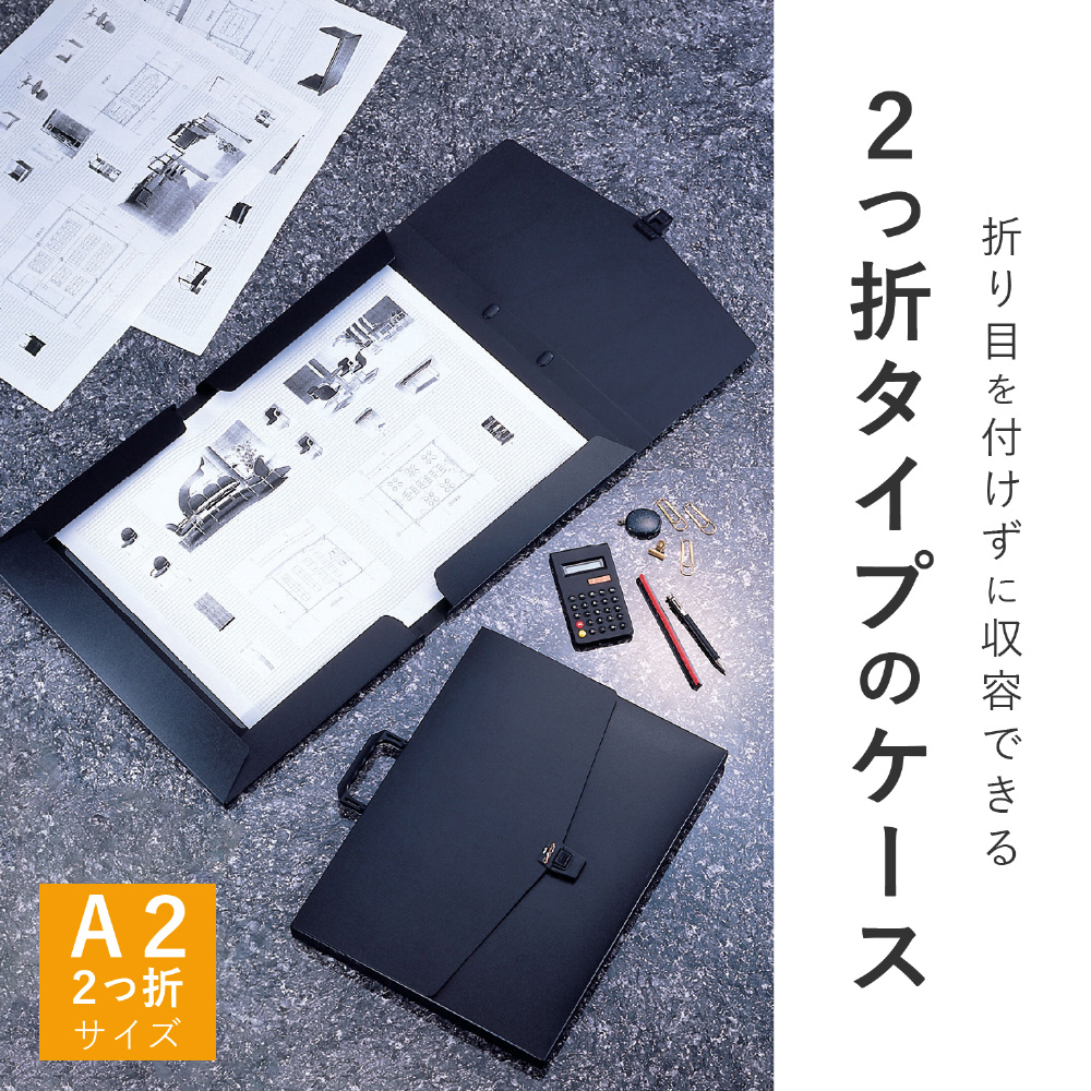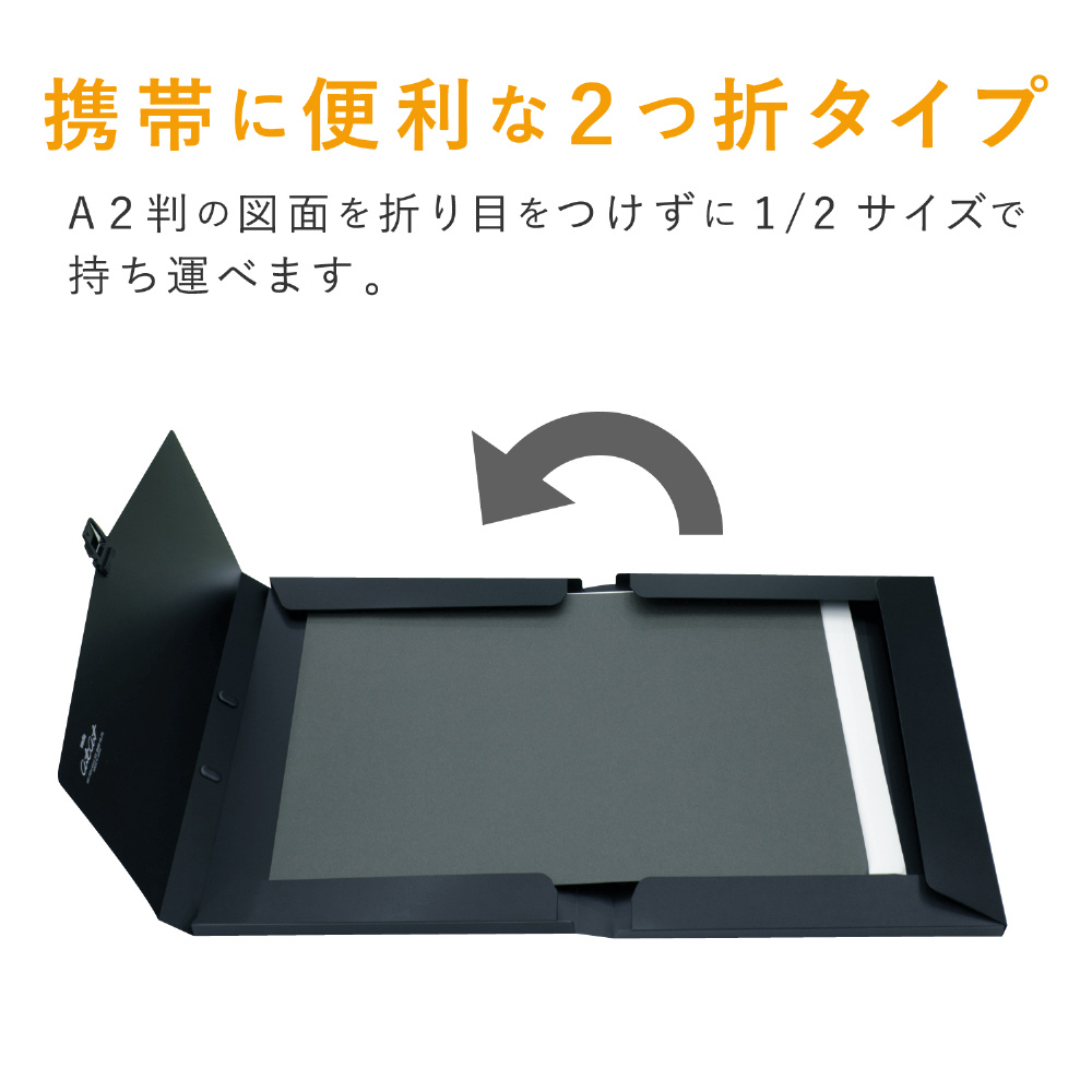 A2判または、A1判の図面を折り目をつけずに1/2サイズで携帯できます。