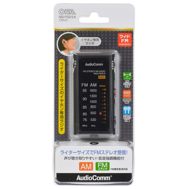| 商品名 | RAD-P3331S 携帯ラジオ AudioComm ブラック [AM/FM /ワイドFM対応] |