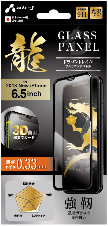 iPhone XS Max 6.5インチ対応 フルラウンドガラスパネル 龍 VG-PR18L-DR