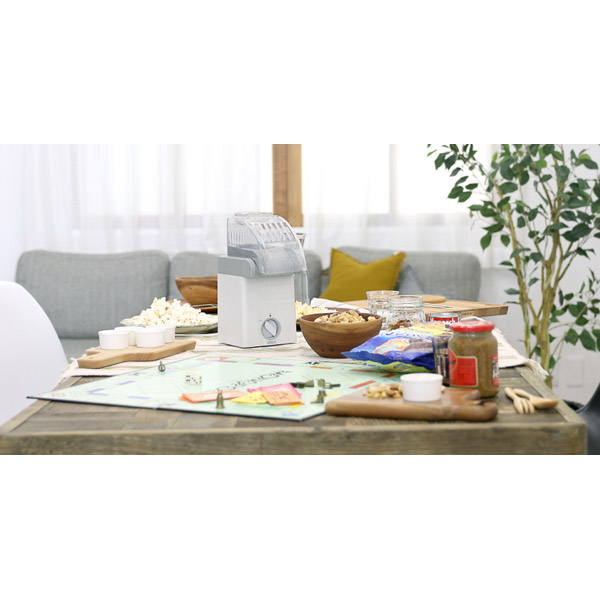 自宅で簡単にポップコーンが楽しめるポップコーンメーカー。使い方は簡単で、ポップコーン豆を入れて電源を入れるだけで、ほのかに甘い香りとともにポップコーンができあがります。