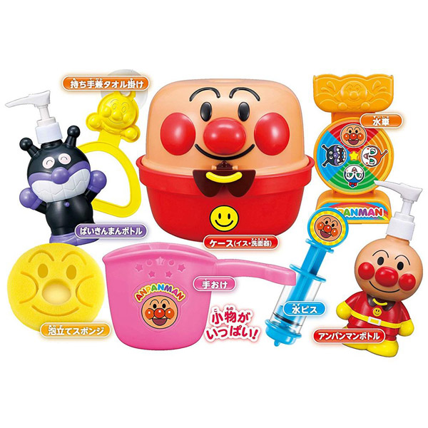 アンパンマンのかわいいケースに入ったおふろセットです。
