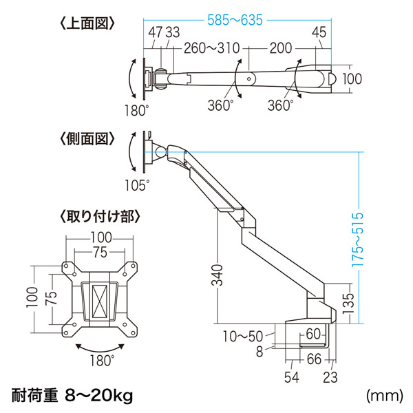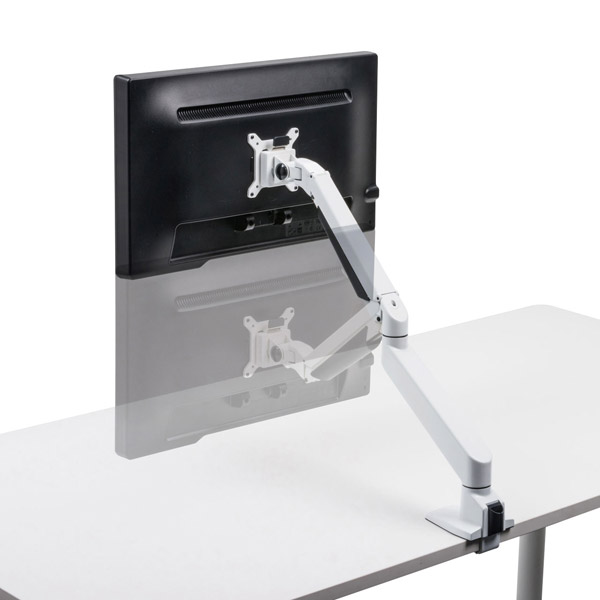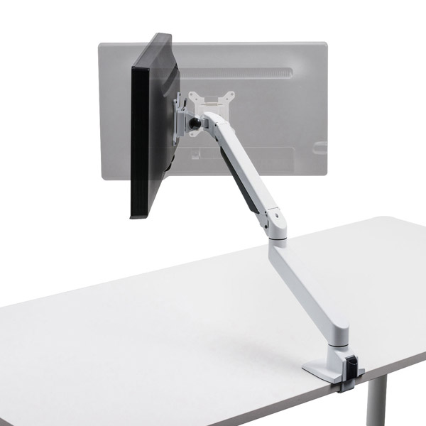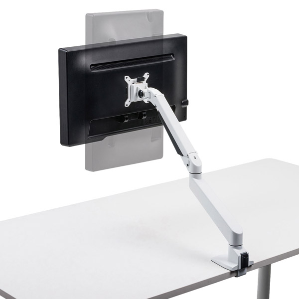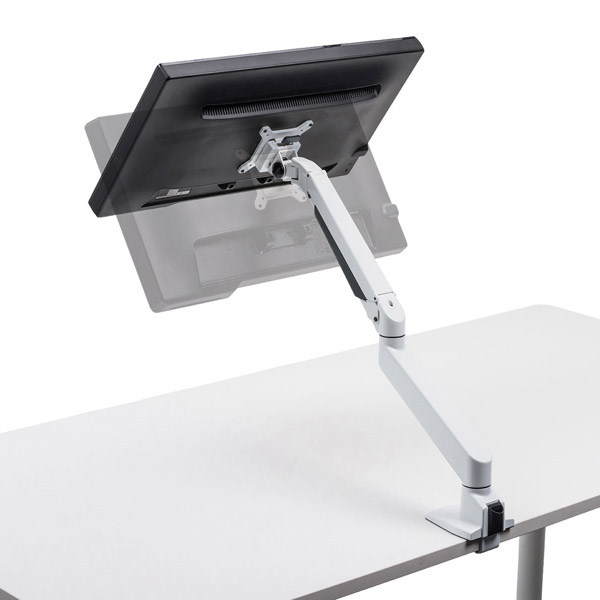 水平垂直多関節液晶モニタアーム。机上面を有効活用。画面の位置を上下左右自由自在に。