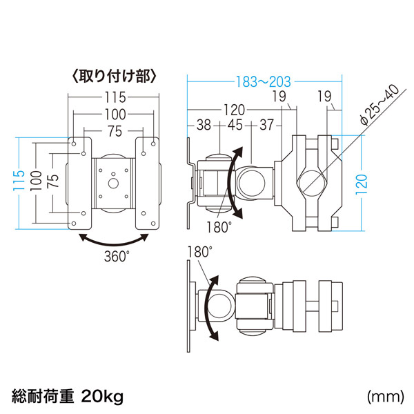 支柱へ取付け可能なアーム。液晶テレビの取付けにも対応。