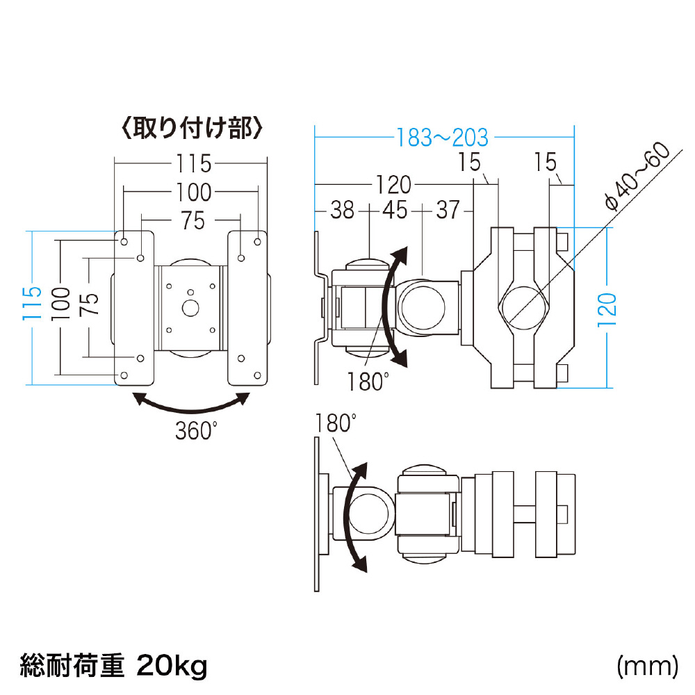高耐荷重支柱取付けモニタアーム CR-LA359