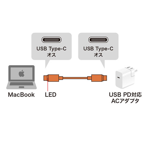 KU-CCP15MAC MacBook用LED付き Type-C充電ケーブル[1.5m]