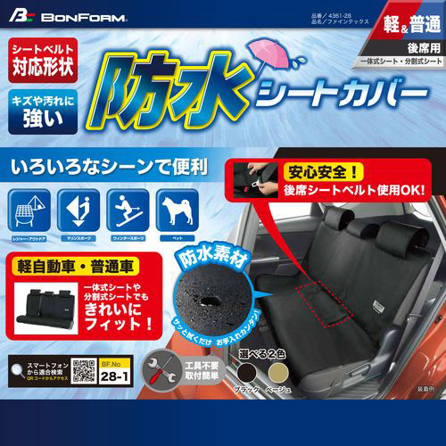 | 商品名 | 4361-28BE シートカバー ファインテックス リヤ 後席シートベルト対応 ベージュ 軽・普通車用 |