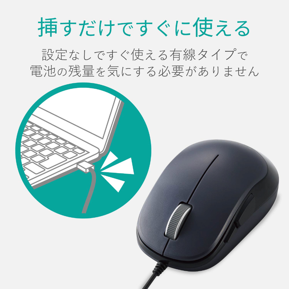 ■挿すだけですぐに使える有線接続タイプの3ボタンBlueLED有線マウスです。