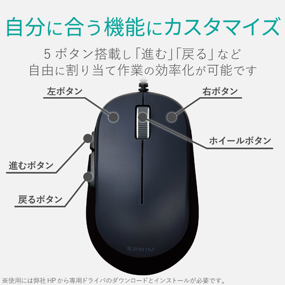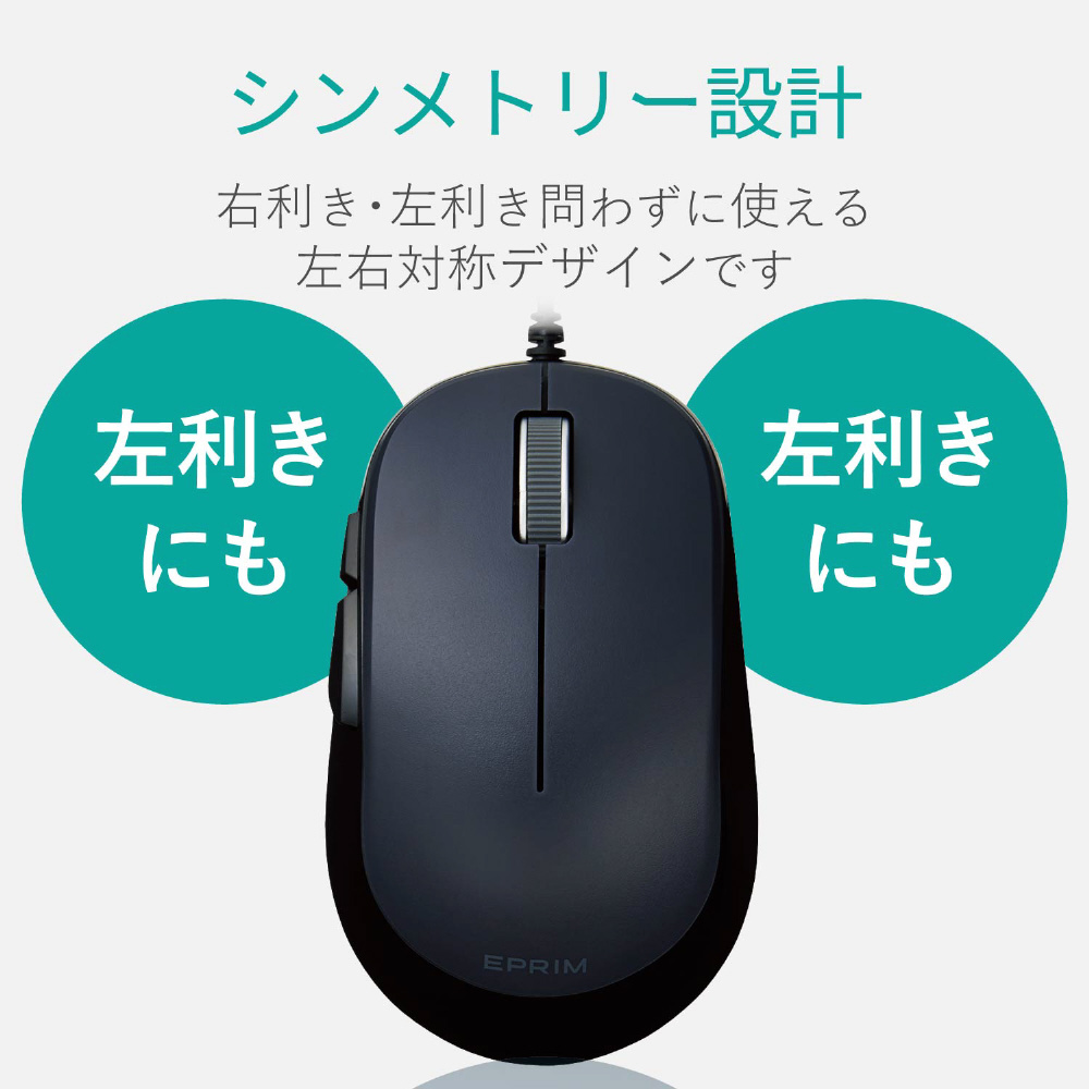 有線BlueLEDマウス EPRIM[USB・Mac/Win・5ボタン/PS5対応] M-Y9UBXBK ブラック