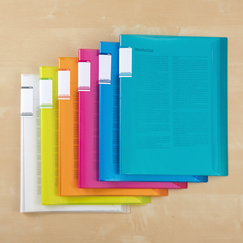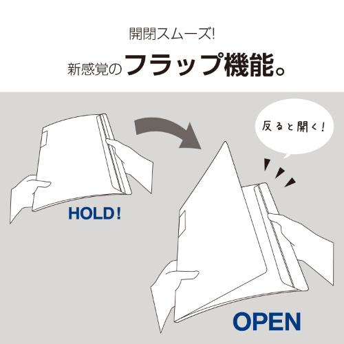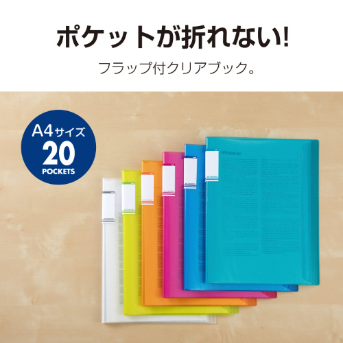 フラップ付きクリヤブック!不意な表紙の開きを防いでポケットの折れを防ぐ!
