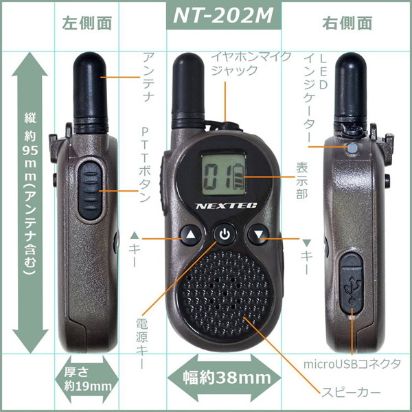 【 超小型・軽量 】特定小電力トランシーバー 2台セット NEXTEC NT−202ME NT-202ME