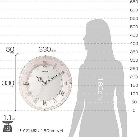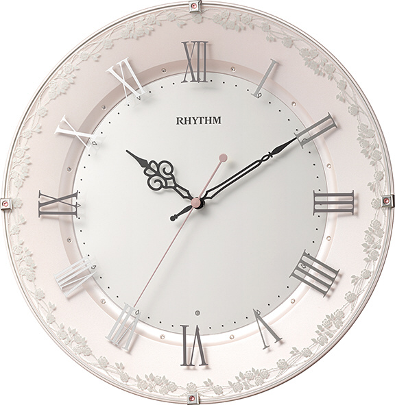 薔薇模様の飾り線をさりげなく施した上品なデザインの電波掛け時計