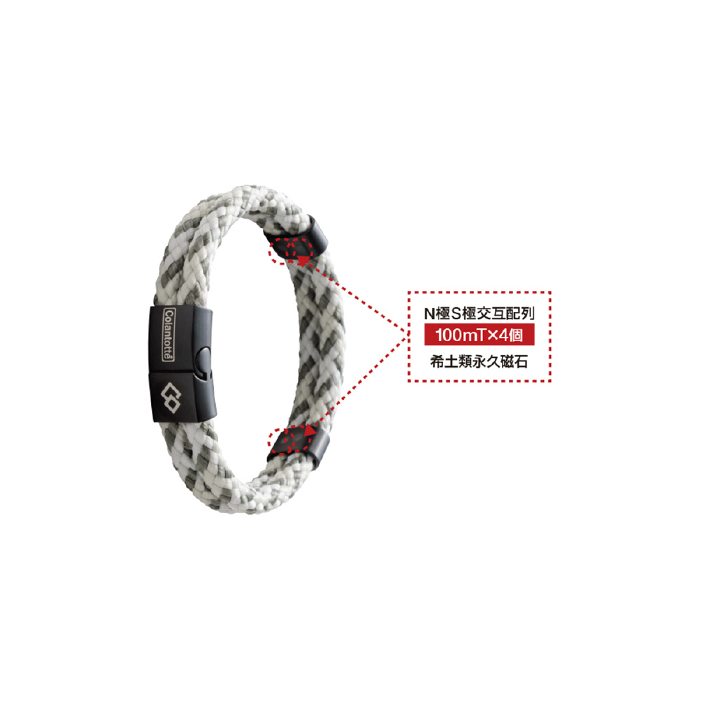 日常のスタイリングに、休日のアウトドアに、さなざまなライフスタイルにマッチし、自由な発想で使える組紐タイプの磁気アクセサリー。