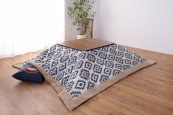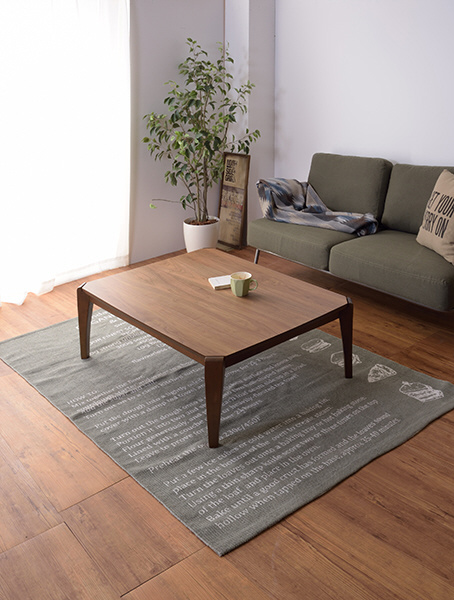 意味のあるデザイン。愛着を持って長くお使いいただけるよう、デザイン性と共に使い勝手の良さを追求したコタツテーブルです。布団が脚と天板で挟み込むように固定され、ずれにくい設計になっています。脚部と幕板の曲線が美しく、ウォルナットの深みある風合いが上品な印象の、一年中使えるコタツテーブル。