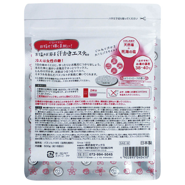 | 商品名 | 汗かきエステ気分 ホワイトスキンケア(500g: 約16回分)ホワイトローズの香り[入浴剤] |