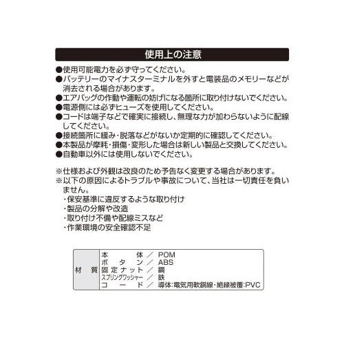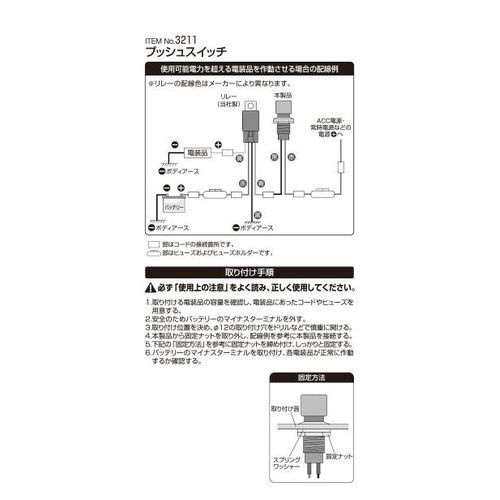 | 商品名 | 3211 プッシュスイッチ 自動もどり DC12V・5A/DC24V・2.5A |