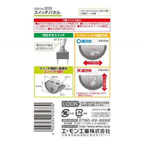3233 スッキリ取り付け・しっかり固定 スイッチパネル
