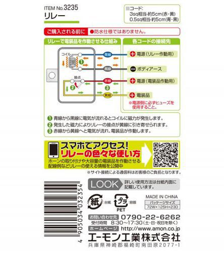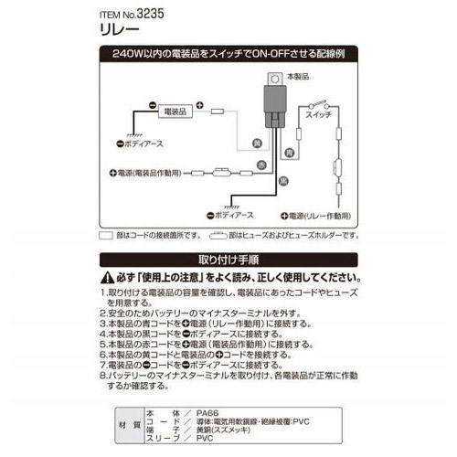 3235 リレー 20Aまでの電装品の配線をサポート DC12V車専用
