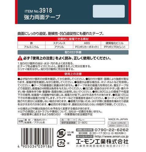 | 商品名 | 3918 強力両面テープ (リップスポイラー・バイザーなどに) 車外用 グレー色 幅10mm×長さ3m×厚さ0.85mm |