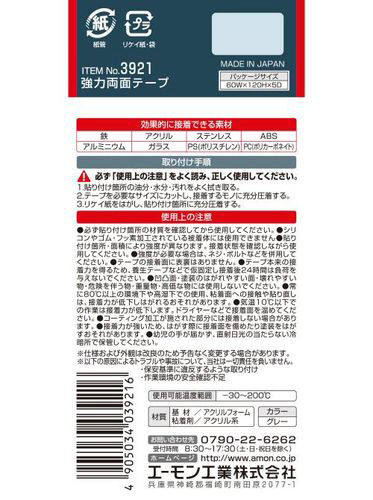 | 商品名 | 3921 強力両面テープ (外装小物・エンブレムなどに) 車外用 グレー色 幅5mm×長さ2m×厚さ0.2mm |