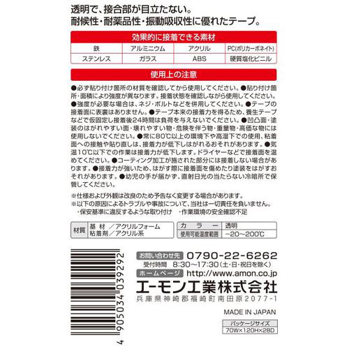 ・材質:基材/アクリルフォーム 粘着剤/アクリル系