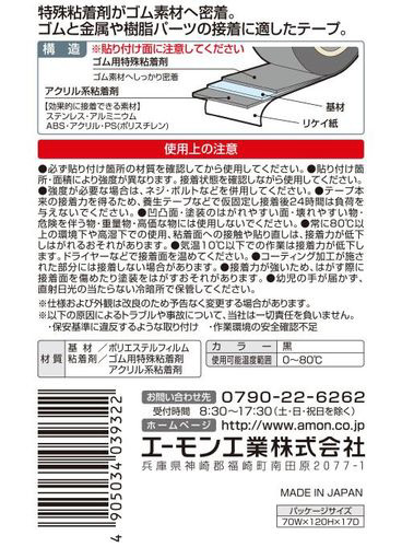 | 商品名 | 3932 強力両面テープ (ゴム用) 車内用 黒色 幅10mm×長さ2m×厚さ0.15mm |