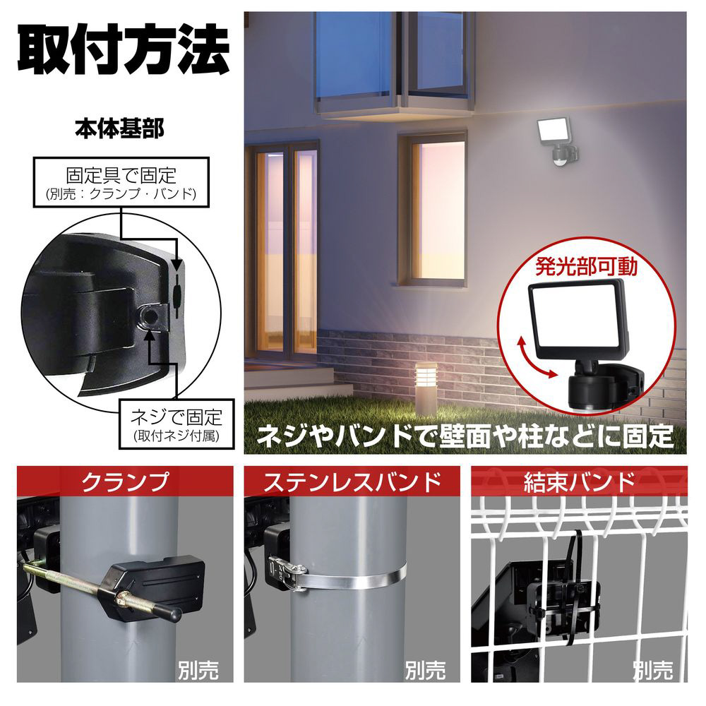 取り付け方法 ネジ止め、クランプ(別売)、ステンレスバンド(別売)