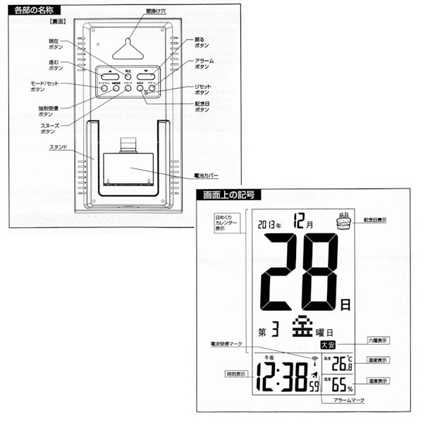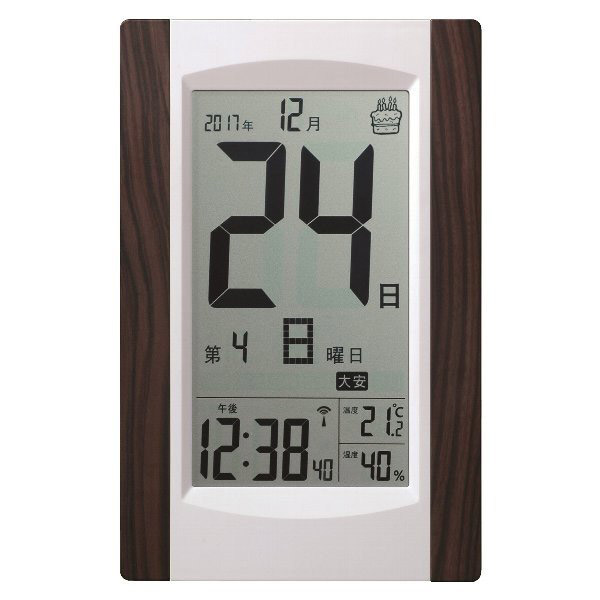大きい日付表示のデジタル日めくり電波時計 KW9256