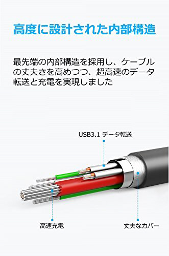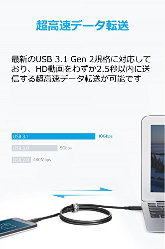 Anker PowerLine II USB-C & USB-A 3.1(Gen2) ケーブル(0.9m) black A8465011 【864】